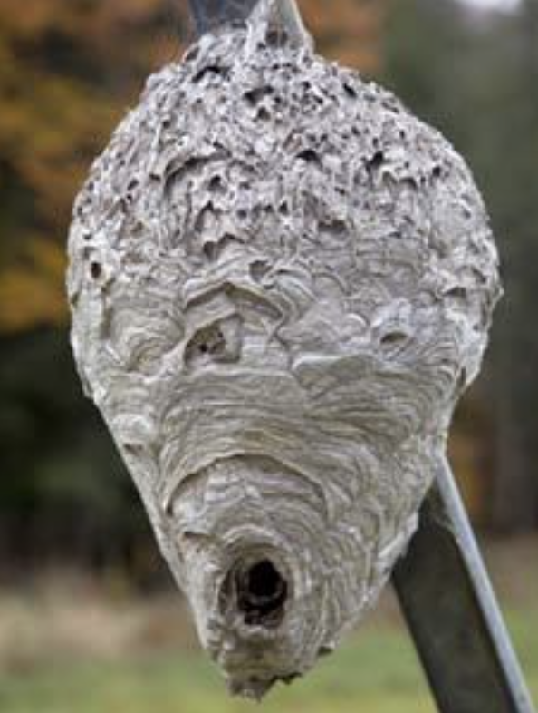 Beekeepers like wasps a whole lot more than pesticides, so we would love it if our neighbors would leave these nests in place. If there is a public safety issue, however, and one of these is in a city tree or public location, you can call the Department of Health Pest Control Department. If it is located on private property, the owner will have to contact a professional pest management company.